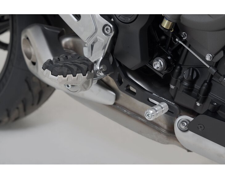 Nastavitelný brzdový pedál z vysoce kvalitního frézovaného hliníku s povrchovou úpravou HART-COAT® umožňuje optimalizovanou manipulaci a ovládání brzdy. Na rozdíl od originálu lze délku brzdového pedálu SW-MOTECH nastavit o +5/-5 mm, takže vyhovuje každé noze a každému stylu jízdy. Dezén běhounu zvyšuje přilnavost a poskytuje lepší stabilitu pro sportovní jízdu a delší cesty. S běhounem Adventure (prodává se samostatně) můžete zlepšit ovládání brzdového pedálu, zejména při jízdě v terénu ve stoje.