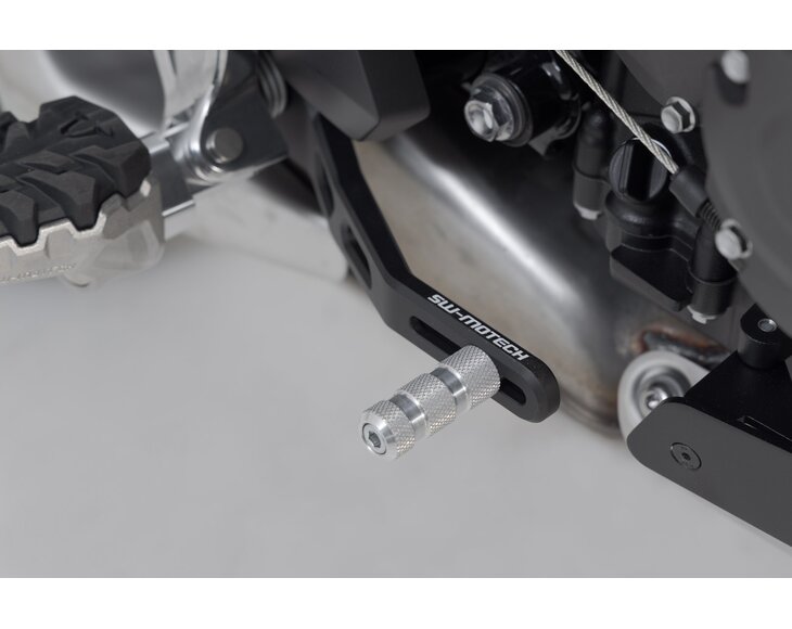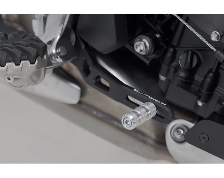 The adjustable brake pedal made of high-quality milled aluminum with HART-COAT® finish allows for optimized handling and control of the brake. As opposed to the original, the length of the SW-MOTECH brake pedal can be adjusted by +5/-5mm, so it suits every foot and every driving style. The tread pattern increases grip and provides improved stability for sporty driving and longer tours. With the Adventure tread (sold separately) you can improve brake pedal handling, especially during offroad driving while standing.