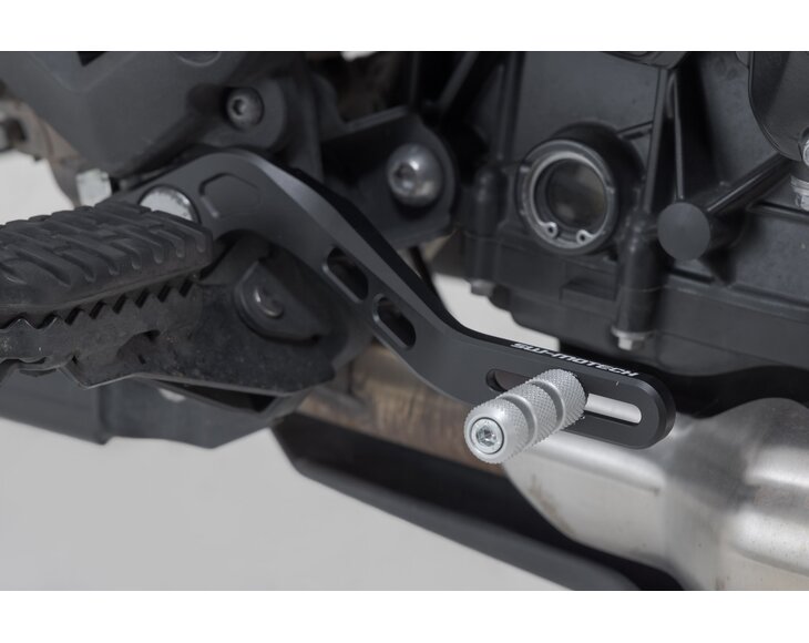 The adjustable brake pedal made of high-quality milled aluminum with HART-COAT® finish allows for optimized handling and control of the brake. The length of the SW-MOTECH brake pedal can be adjusted by 5 cm, so it suits every foot and every driving style. The tread pattern increases grip and provides improved stability for sporty driving and longer tours. With the Adventure tread (sold separately) you can improve brake pedal handling, especially during offroad driving while standing.