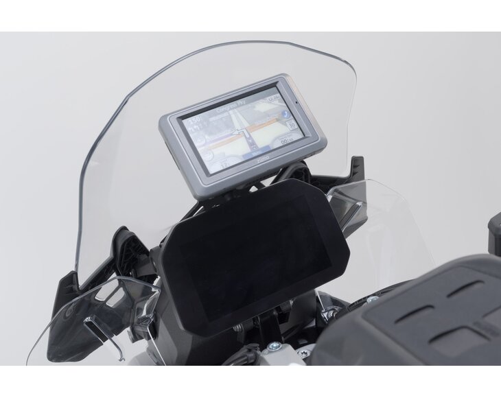 - Retaining plate with universal drill-hole pattern provides secure hold for the usual GPS models and Navi Case Pro device cases or hardcases from SW-MOTECH.