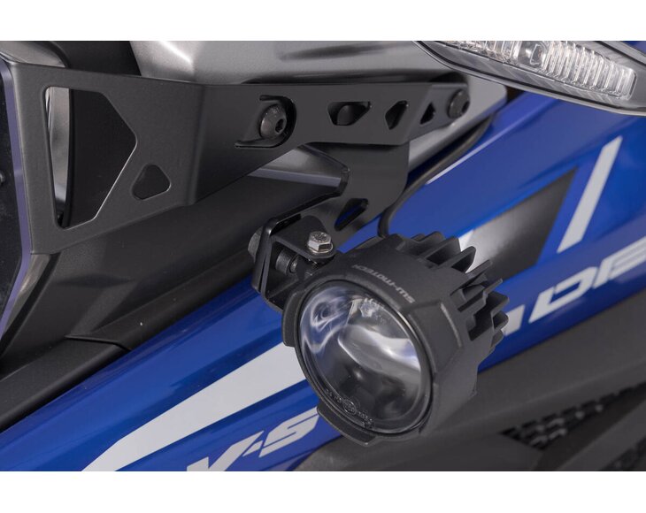 These bike-specific mounts provide optimal positioning of the EVO lights, because they are developed exclusively for each motorcycle model. The sturdy elements made of powder-coated steel are screwed on to existing attachment points. They guarantee secure hold for the EVO lights, even when riding off-road. Please refer to the mounting instructions to determine if headlamps can be mounted standing, hanging and/or sideways on your motorcycle model.