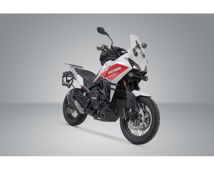 With this complete system you get all the components you need to start your next motorcycle tour with the Moto Morini X-Cape 650 and the DUSC: two robust DUSC hard cases, two removable PRO side carriers, an attachment kit and a simultaneously locking lock set. The bike-specific carriers and size of the cases are designed to perfectly match the shape of the tail as well as the motorcycle's exhaust system.