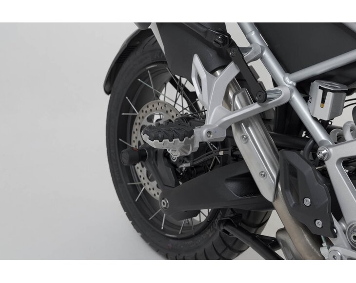 Are you unable to comfortably position your passenger footrest? Then the EVO passenger footrest kit for Triumph Tiger 1200 models is the ideal solution for you. This sophisticated system, consisting of rotating elements with firmly interlocking teeth, gives you 36 options for positioning. The position of the footrest can be adjusted downward, forward and back and its angle is also fully adjustable so as to suit your individual needs.The bike-specific joint adapters are simply fitted onto the footrest mount using the original parts. We'll show you how this works in the mounting instructions.