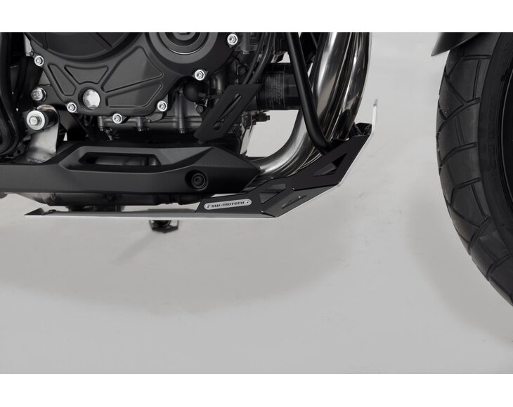 Additional protection against rocks and contact with the ground for the engine: the high-quality, aluminium alloy engine guard shows what it's capable of off the street, but provides extra safety and an individualized look on the streets, too. State-of-the-art production gives these bike-specific protectors a secure fit. The installation on frame mounting points lends additional stability and allows for easy installation.