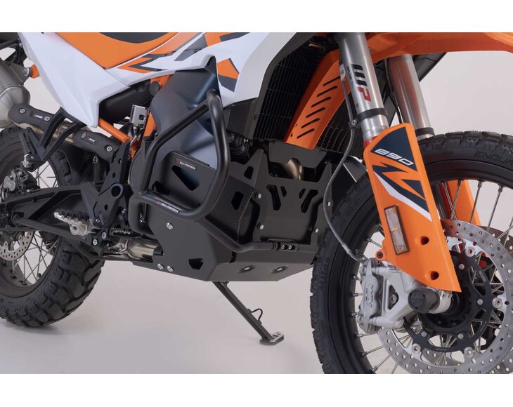 The resilient engine guard offers additional protection to the engine and plastic tank of the KTM 790 Adventure and KTM 890 Adventure. The 4 mm thick aluminum sheet made of high-quality aluminum alloy can protect the engine from stone chips and scratches if the motorcycle comes in contact with the ground. Thus, it offers increased safety and an individual look.