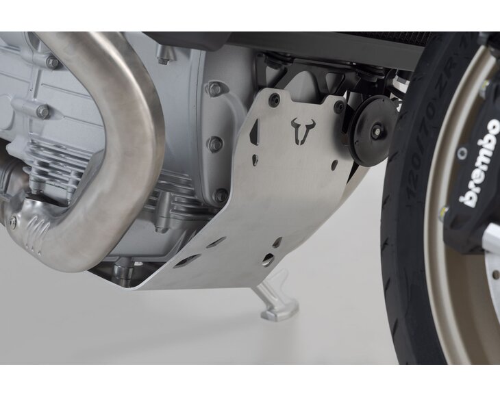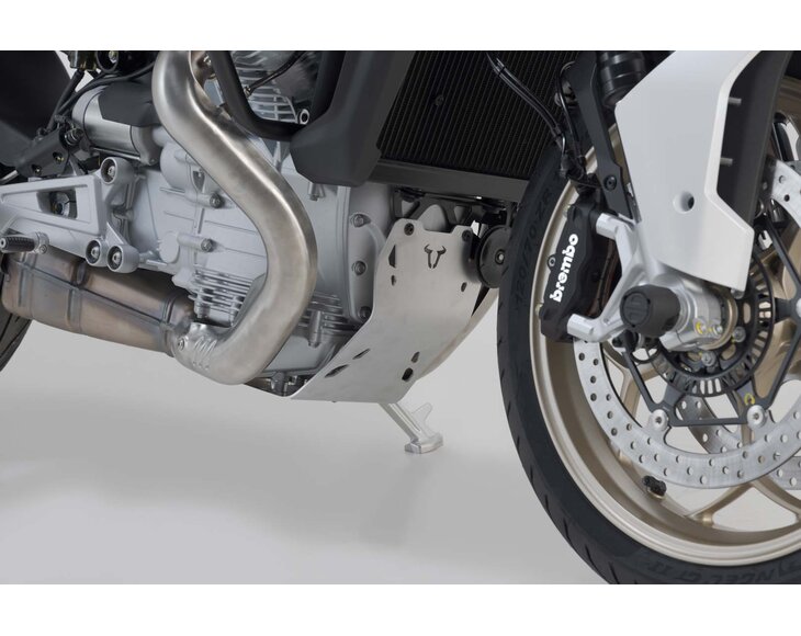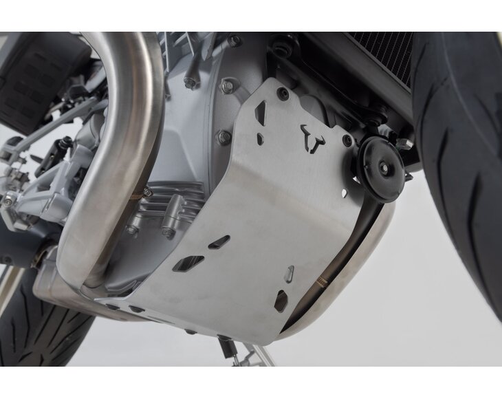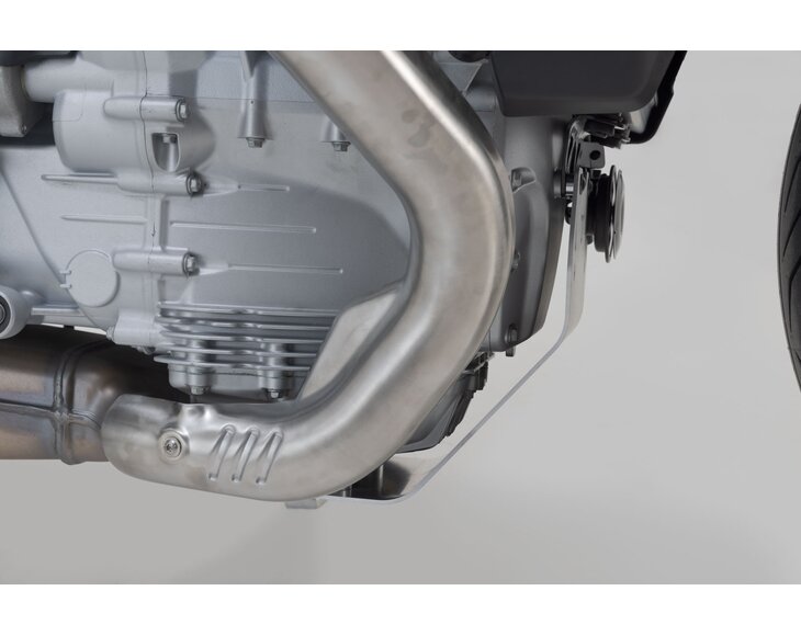 Additional protection against rocks and contact with the ground for the engine: the high-quality, aluminium alloy engine guard shows what it's capable of off the street, but provides extra safety and an individualized look on the streets, too. State-of-the-art production gives these bike-specific protectors a secure fit. The installation on frame mounting points lends additional stability and allows for easy installation.