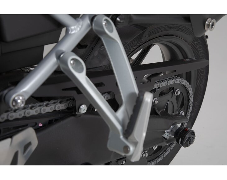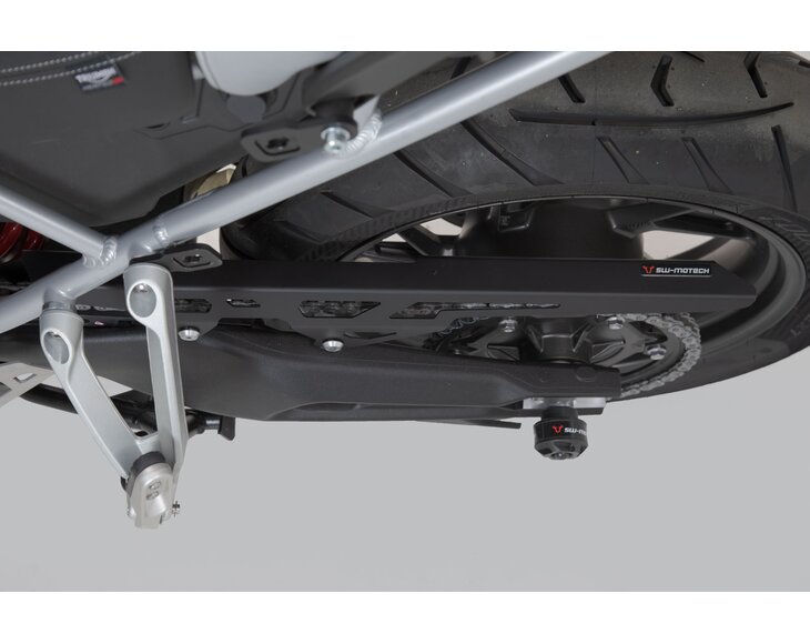 The SW-MOTECH chain guard is a high-quality alternative to the original plastic chain guard. The rubber-mounted attachment is easy to install.