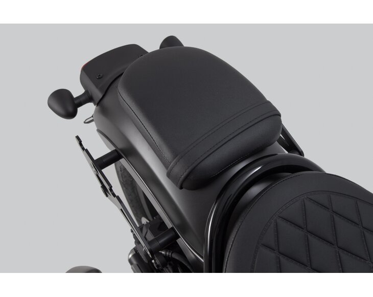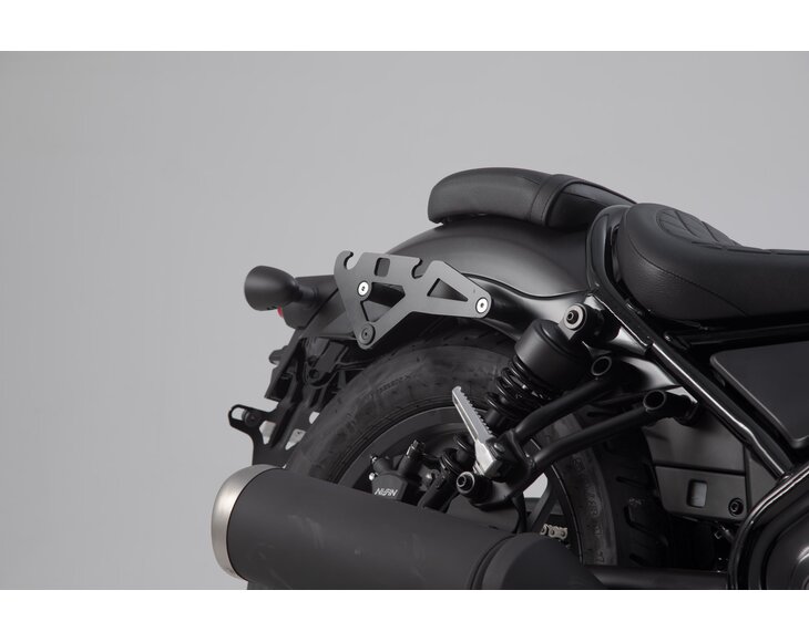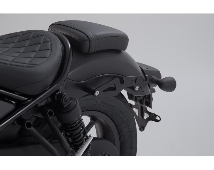 The bike-specific bag carrier can be easily and quickly mounted on to original attachment points on the fender strut. The quick lock system allows LH Legend Gear side bags to be attached and removed in just a few easy hand movements, without the driver foregoing reliable bag fastening.