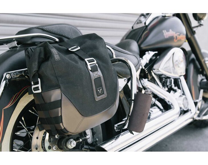 Plays well with steel: Legend Gear LC1 and LC2 side bags are equipped with a convenient quick lock system for SLC steel side carrier. A combination of coated canvas sailing material/fabric with robust napalon synthetic leather supports the vintage design oft the soft luggage line. The bike-specific SLC side carrier allows easy and sage mounting on original mounting points to the bike. SLC side carrier, made for Harley-Davidson Softail Fat Boy FLSTF (07-17), adapts perfectly to the design of the bike. Set includes one Legend Gear LC1 side bag, one Legend Gear LC2 side bag, SLC side carrier and mounting material.