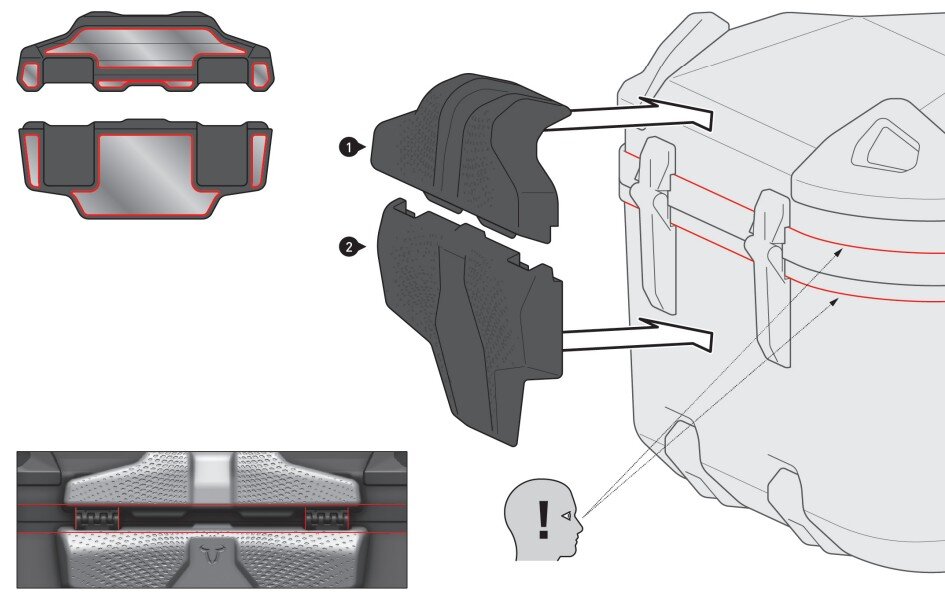 Perfect for longer tours: this two-part backrest made of PU foam ensures an ergonomic seating position and optimal comfort.An integrated lumbar cushion promotes a natural sitting posture while cut-outs in the spine area provide additional support for the passenger when cornering. The upper section is padded to maximise the contact surface.The backrest seamlessly integrates with the design of the DUSC hard-shell case and is securely affixed using a pre-applied, double-sided 3M adhesive film.