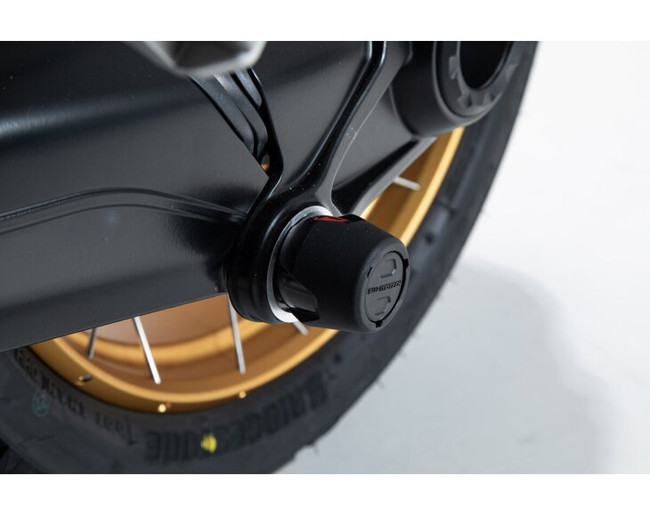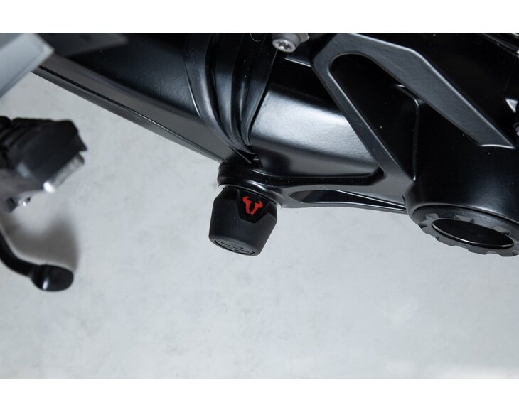 Swingarm Sliders made of abrasion proof synthetics to protect the rear axle.