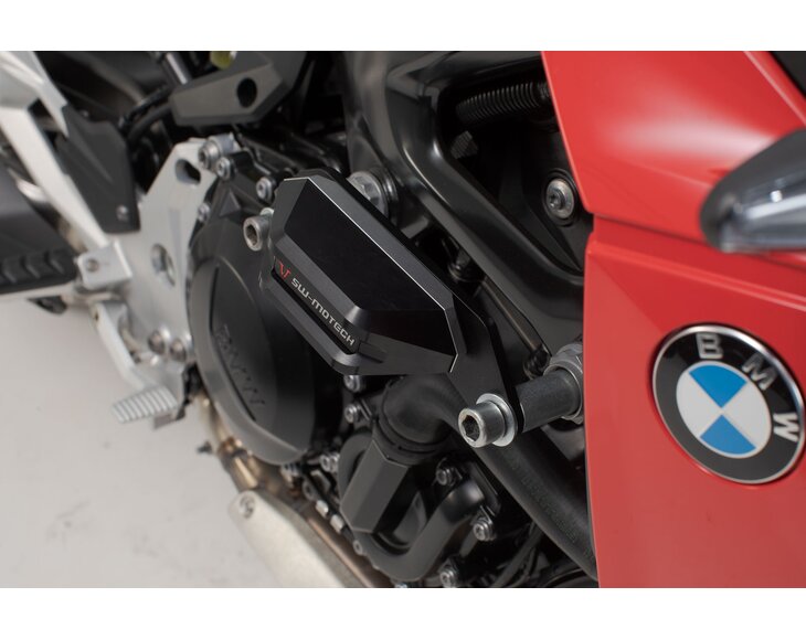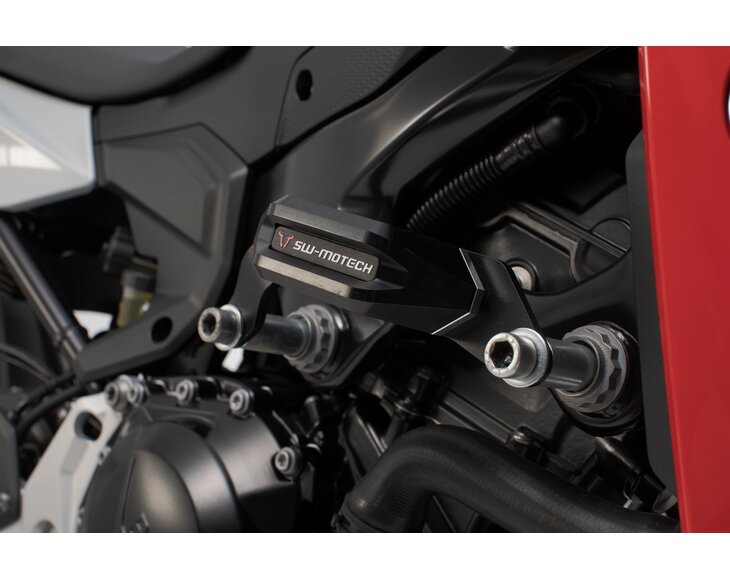 Frame crash pads provide additional protection in the event of a fall. The shape, surface and material of the pads provide excellent sliding properties to reduce damage to the motorcycle. The robust aluminium mounting bracket is easy to install, and the abrasion-resistant, CNC-milled slider pads are replaceable.
