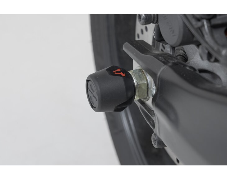 Nárazové podložky vyrobené z otěruvzdorného plastu poskytují dodatečnou bezpečnost kyvného ramene: průměr 50 milimetrů vytváří velkou kontaktní plochu pro nejlepší možné rozložení síly. Díky tvarovanému designu se podložky plně hodí ke vzhledu motocyklu. Všechny díly potřebné pro montáž jsou součástí dodávky.
