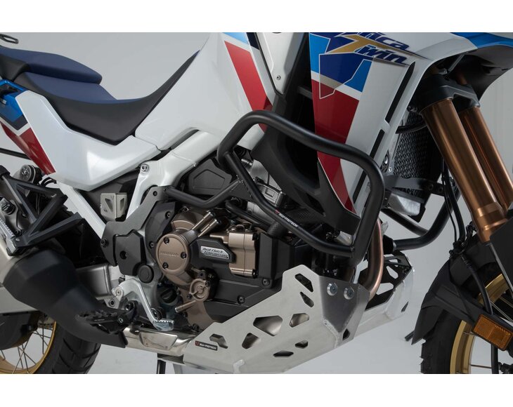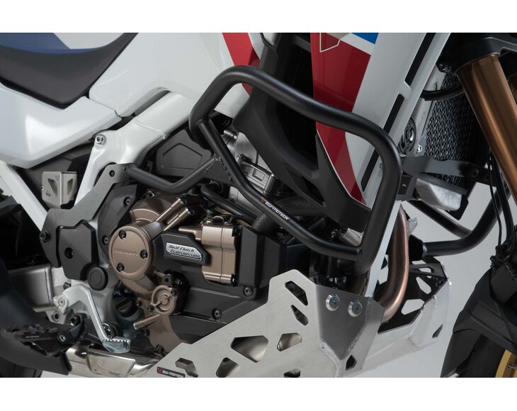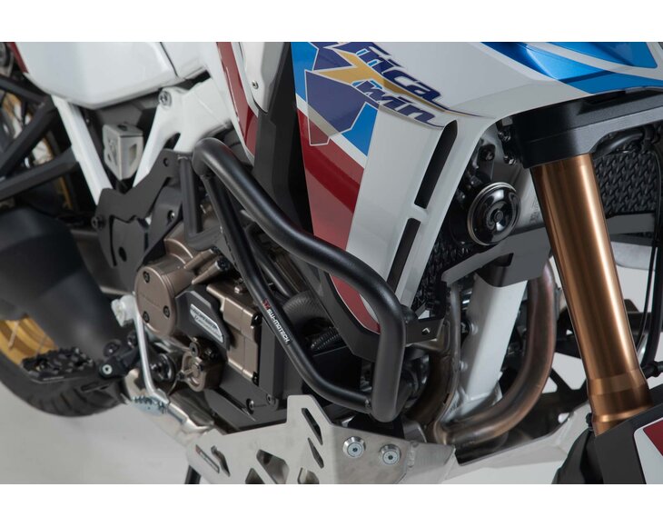 To match the Honda Africa Twin CRF1100L Adventure Sports, the crash bars are made of robust tubular steel with a weather- and corrosion-resistant powder coating in black. The surface finishing is carried out in a state-of-the-art facility in the SW-MOTECH plant in Brno in the Czech Republic.