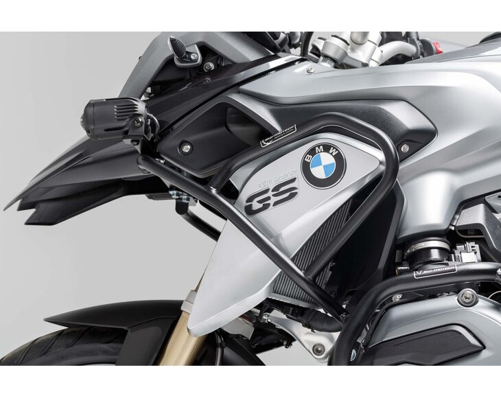 Using the same mounting points, upper crash bars are not compatible with BMW's additional LED high beams.