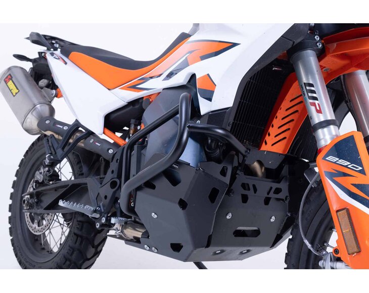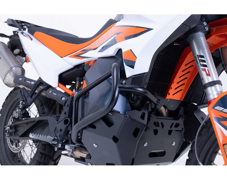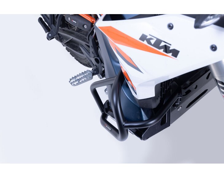 To match the KTM 790 and 890 Adventure, the crash bars made of tubular steel with a diameter of 22/27 mm are offered with a weather- and corrosion-resistant powder coating in black. The surface finishing is carried out in a state-of-the-art facility in the SW-MOTECH plant in Brno in the Czech Republic.