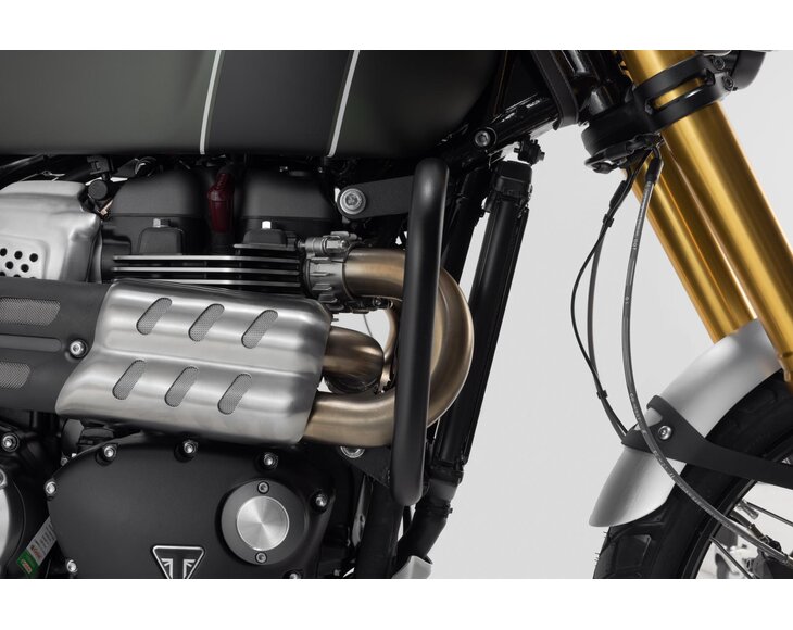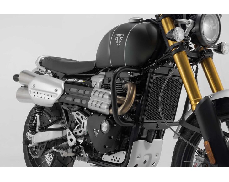 Pro Triumph Scrambler 1200 (21-) nabízíme také padací rámy z ocelových trubek o průměru 27 mm s práškovou barvou odolnou proti povětrnostním vlivům a korozi v černé barvě. Povrchová úprava se provádí v nejmodernějším zařízení v továrně SW-MOTECH v Brně.