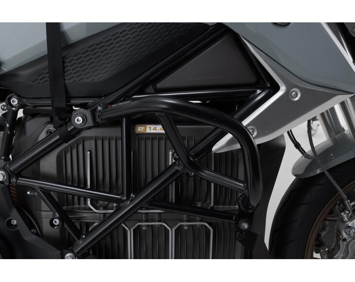 Matching the Zero SR/F (19-), the steel tube crash bars with a diameter of 27 mm are available with a weather- and corrosion-resistant black powder coating. The surface finishing is carried out in a state-of-the-art facility in the SW-MOTECH plant in Brno in the Czech Republic.