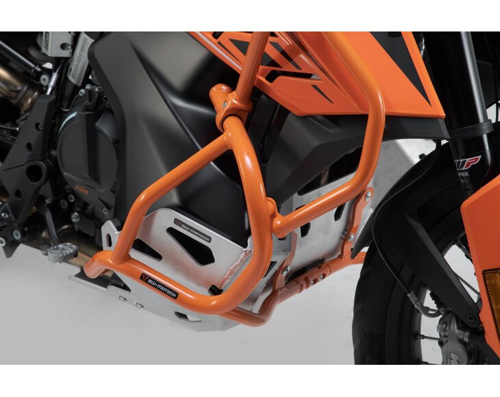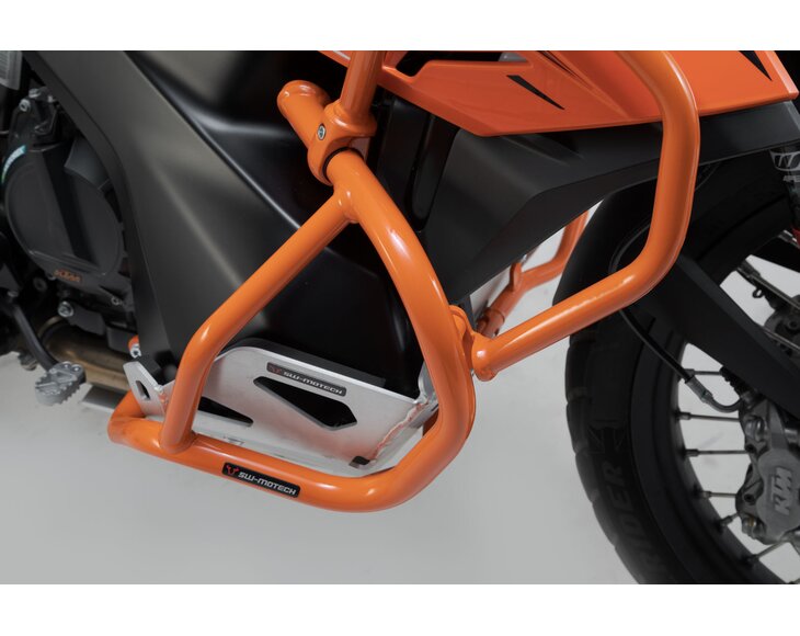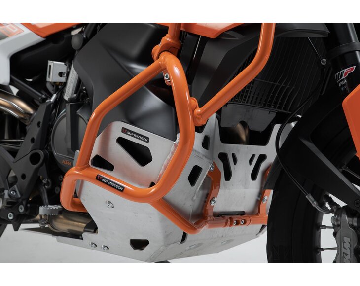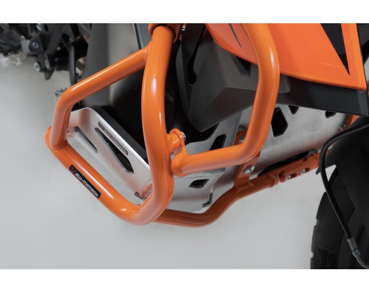 Nabízíme také padací rámy z ocelové trubky o průměru 27 mm s práškovým lakem odolným proti povětrnostním vlivům a korozi v oranžové barvě, aby odpovídaly modelu motocyklu. Povrchová úprava se provádí v nejmodernějším zařízení v továrně SW-MOTECH v brünnu.