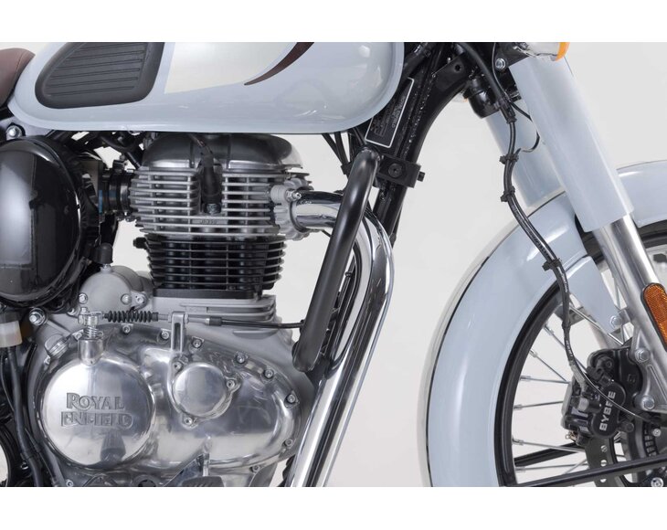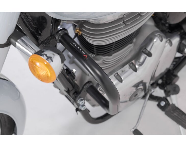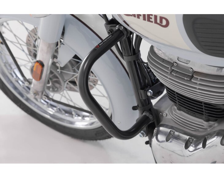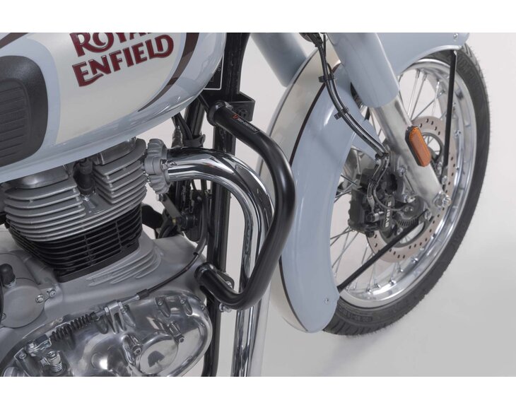 Nabízíme také tyto padací rámy vyrobené z ocelových trubek o průměru 22 mm a práškové barvy odolné proti korozi v černé barvě, která vyhovuje Royal Enfield Classic 350 (22-). Povrchová úprava se provádí v nejmodernějším zařízení v závodě SW-MOTECH v Brně v České republice.