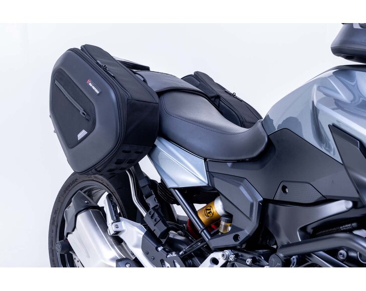 Sedlové brašny, vyvinuté speciálně pro sportovní motocykly, mají minimální vliv na jízdní vlastnosti. Při cestování bez zavazadel lze odnímatelná opěrná ramena oddělit jednoduchým schůdkem a ponechat na kole pouze nenápadné držáky.