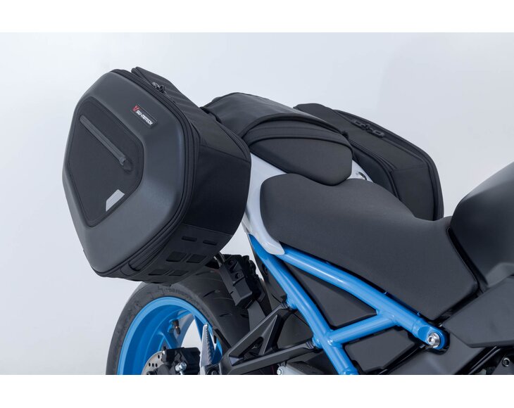 The high version of the PRO BLAZE saddlebags was specially developed for motorcycles with a high exhaust pipe. Due to the raised position, the bags are not affected by the heat emitted from the exhaust. SW-MOTECH manufactures this bag set with the appropriate support arms for the Suzuki GSX-8S.