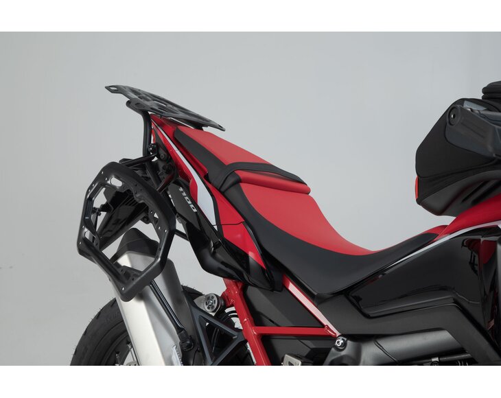Even more robust and ready for adventure - but still removable: with the introduction of the first removable carrier for motorcycle cases, we've made our mark on the accessories market, the PRO side carrier is the new generation. Offroad fans will be impressed. The bike-specific PRO side carrier made of 2.5 mm-thick steel is extremely durable. The PRO side carrier offers side cases from SW-MOTECH, Givi/Kappa, Hepco & Becker, Krauser and Shad as well as the Sysbags (SysBag 15, 30, WP L) a secure fit - the matching adapter kits are sold separately. The PRO side carrier's numerous functional drill holes enable the mounting of RotopaX canisters and other accessories.