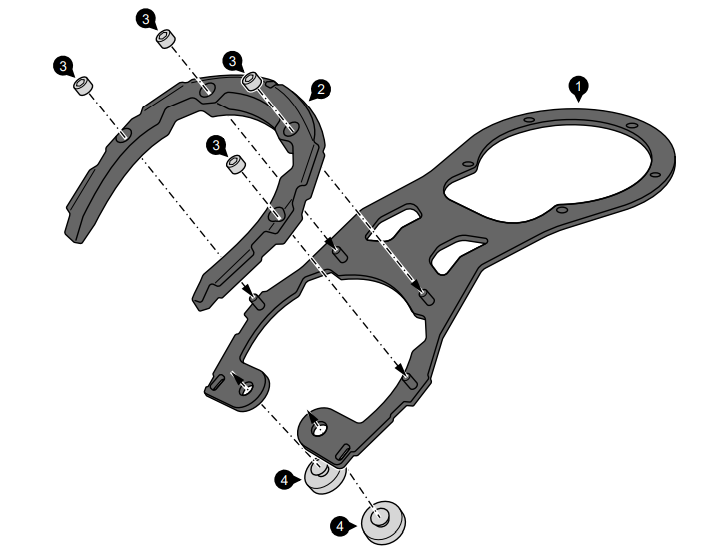 This way, the top ring can be custom-aligned onto the guide rail on the underside of the tank bag. Once the right position has been found, the top ring is screwed tight. When changing to another motorcycle, the position of the upper ring can be adjusted accordingly.