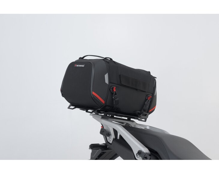The tail bag from the PRO series is made by SW-MOTECH from indestructible 1680 D Ballistic Nylon and the rack from robust aluminum alloy. The rack is attached to resilient bike-specific mounting points on the motorcycle.