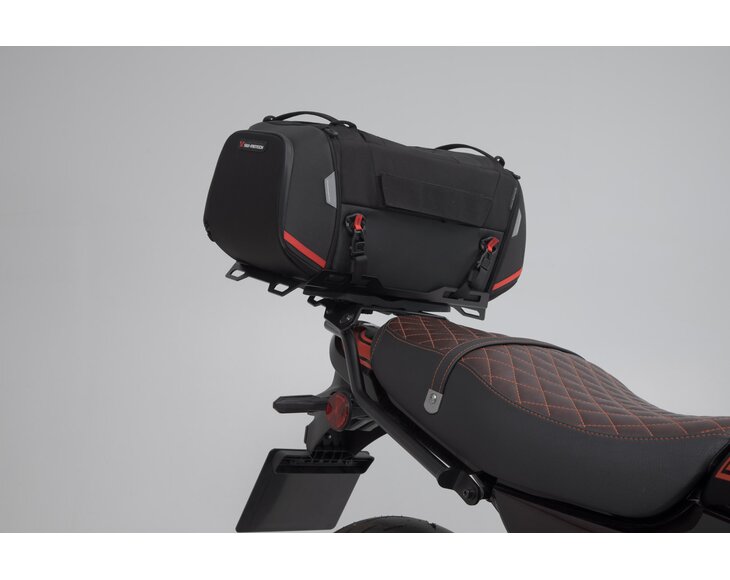 The tail bag from the PRO series is made by SW-MOTECH from indestructible 1680 D Ballistic Nylon and the rack from robust aluminum alloy. The rack is attached to resilient bike-specific mounting points on the motorcycle.