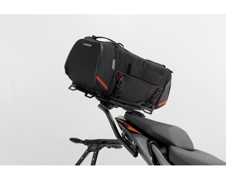 We have put together this combination of tail bag and luggage rack to be suitable for the KTM Duke. The bike-specific STREET-RACK with extension offers an ideal large contact surface for the PRO Rackpack tail bag.