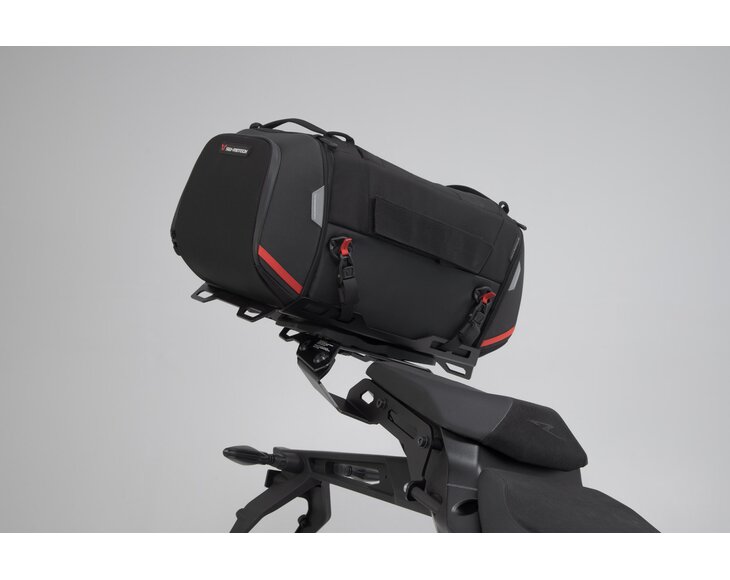 The tail bag from the PRO series is made by SW-MOTECH from indestructible 1680 D Ballistic Nylon and the rack from robust aluminum alloy. The rack is attached to resilient bike-specific mounting points on the motorcycle.