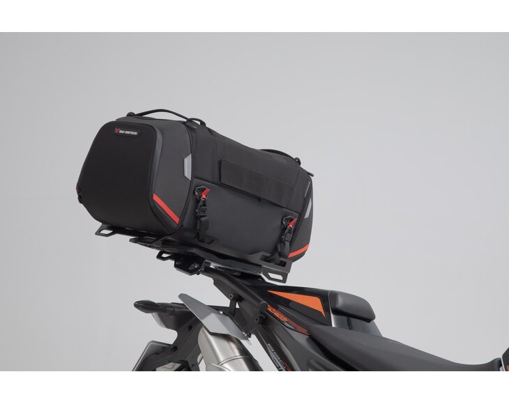We have put together this tail bag and rack combination to fit KTM bikes. The bike-specific STREET-RACK with extension offers an ideal large contact surface for the PRO Rackpack tail bag.