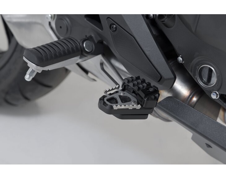 SW-MOTECH has manufactured this extension for brake pedal from milled aluminum to fit the original Kawasaki Versys 650 brake pedal.