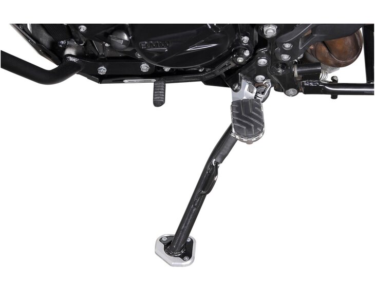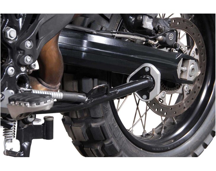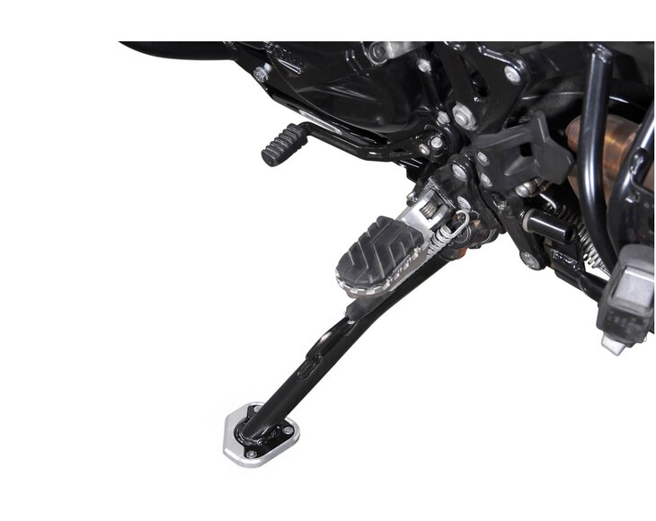 The attractive side stand foot is made of high strength aluminum alloy and CNC milled. Larger contact surface of the side stand extension prevents sinking in soft ground.