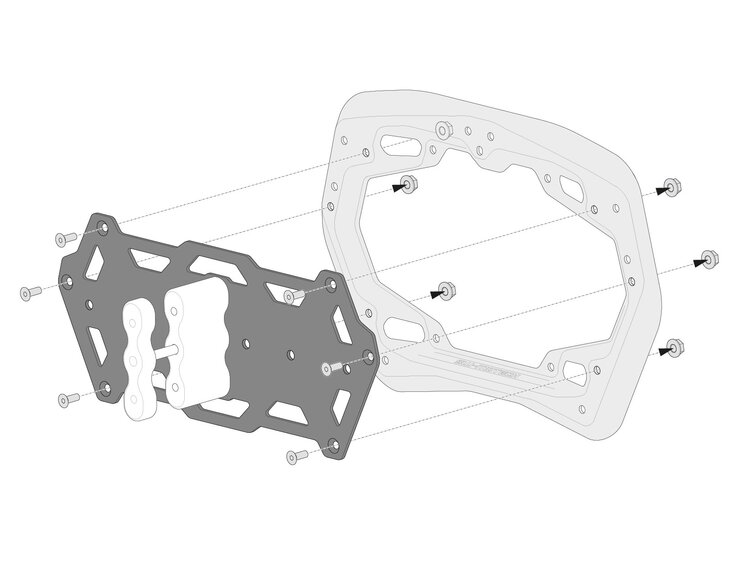 - To mount on existing bores of the SW-MOTECH PRO side carrier