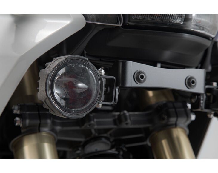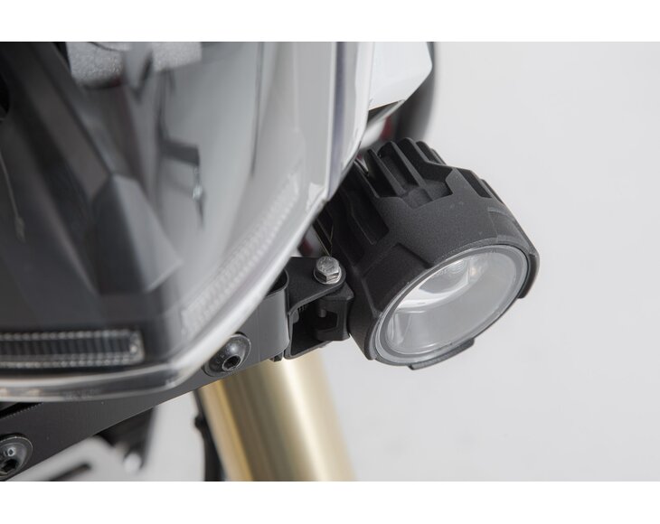 These bike-specific mounts provide optimal positioning of the EVO lights, because they are developed exclusively for each motorcycle model. The sturdy elements made of powder-coated steel are screwed on to existing attachment points. They guarantee secure hold for the EVO lights, even when riding off-road. Please refer to the mounting instructions to determine if headlamps can be mounted standing, hanging and/or sideways on your motorcycle model.