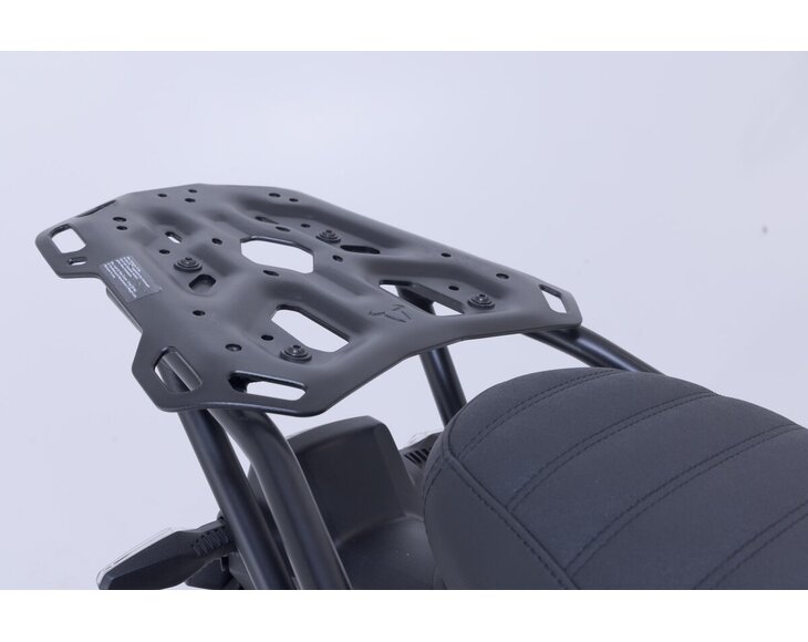 This complete solution contains everything required for installing a top case: TRAX ADV top case, bike-specific rack, adapter plate and TRAX lock set. And the next tour can start...because in the development of the TRAX ADV, stability and impermeability towards dust and water were just as important as easy handling. Whether on a off-road adventure, wanderlust tour or a short haul, the aluminum top case with a thickness of 1.5 millimeters proves itself in every challenge. The bike-specific rack and the adapter plate secure the top case: it is simply suspended and locked with the help of the lockable latch.