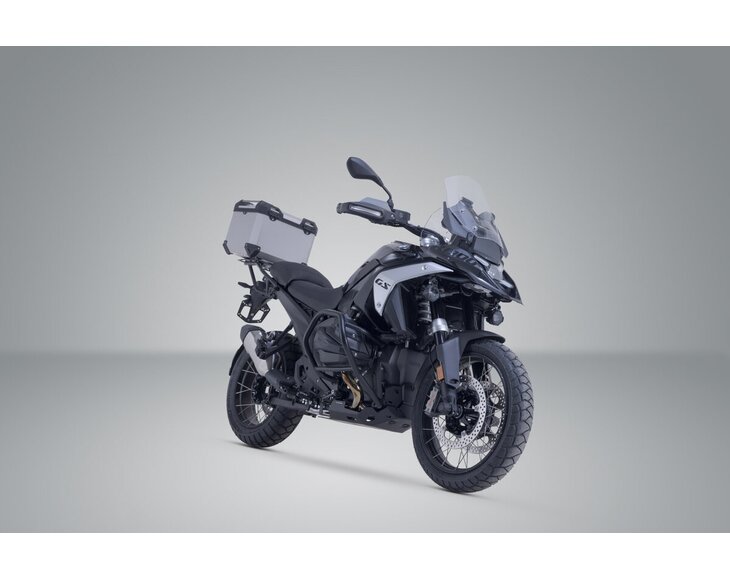 The TRAX ADV top case system consists of one rugged black top case and the matching ADVENTURE-RACK for the BMW R 1300 GS.