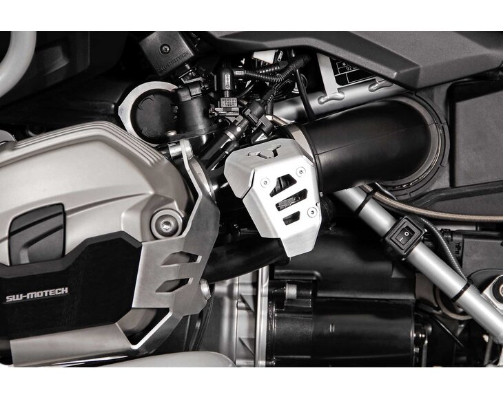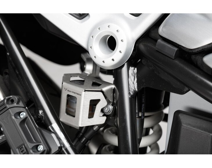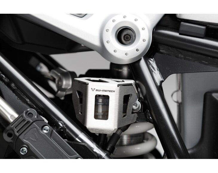 The protection set contains the following components suitable for BMW R Nine T models: Brake pump protection, Header pipe guard, Potentiometer guard and Brake fluid reservoir guard.