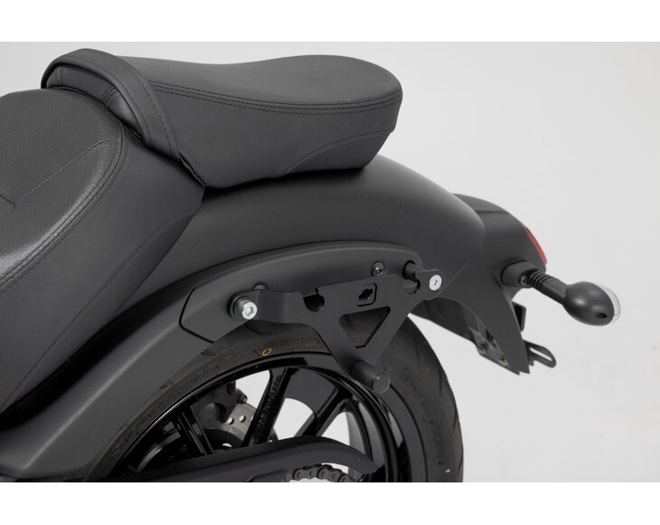 This LH side bag system was developed by SW-MOTECH specifically for the Kawasaki Vulcan S. It consists of an LH1 on the right-hand side and an LH1 side pocket on the left-hand side, including a matching carrier for the motorcycle. Due to the uniform size of the bags, the duo ensures a symmetrical appearance on the bike and also enables additional individual exhaust configurations.
