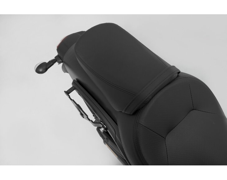 The bike-specific bag carrier can be easily and quickly mounted on to original attachment points on the fender strut. The quick lock system allows LH Legend Gear side bags to be attached and removed in just a few easy hand movements, without the driver foregoing reliable bag fastening.