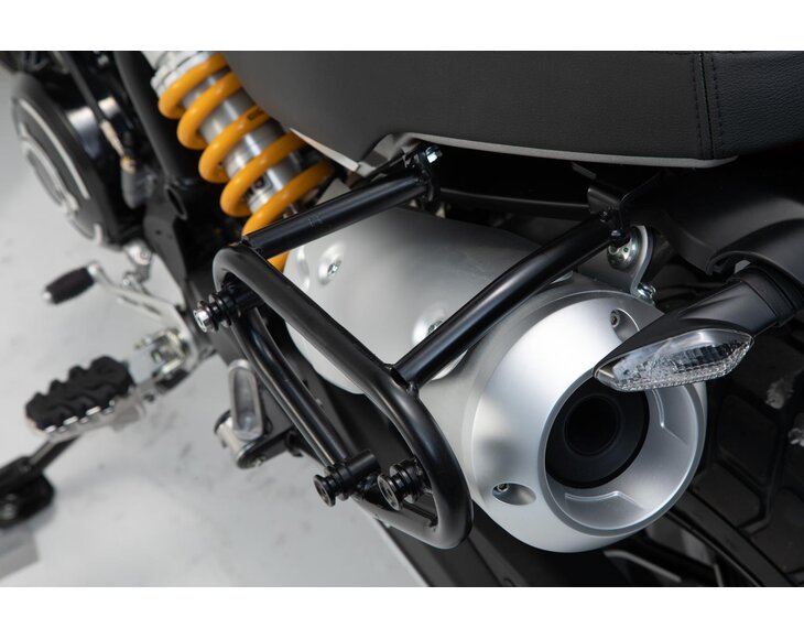 - The SLC side carrier, individually designed for Ducati Scrambler 1100 models, fits perfectly into the visual appearance.