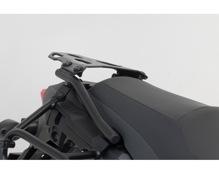 The compact STREET-RACK was developed specially for sporty motorcycles, naked bikes and smaller street bikes. The URBAN ABS top case or an adapter plate can be fixed to the rack in one step without any tools. The adapter plate provides a sturdy base for top cases from SW-MOTECH, Givi, Krauser and Shad or a Sysbag 15/30 with adapter plate. Together with the extension (sold separately) with extra large contact surface, the STREET-RACK is also suitable for strapped-on luggage. With our STREET-RACK, your bike is ready for the next long tour in a few simple steps.