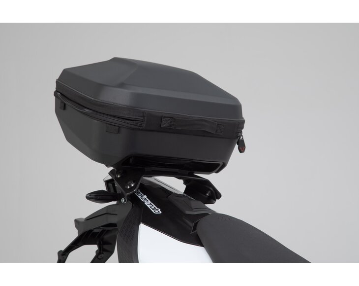 The compact STREET-RACK was developed specially for sporty motorcycles, naked bikes and smaller street bikes. The URBAN ABS top case or an adapter plate can be fixed to the rack in one step without any tools. The adapter plate provides a sturdy base for top cases from SW-MOTECH, Givi, Krauser and Shad or a Sysbag 15/30 with adapter plate. Together with the extension (sold separately) with extra large contact surface, the STREET-RACK is also suitable for strapped-on luggage. With our STREET-RACK, your bike is ready for the next long tour in a few simple steps.