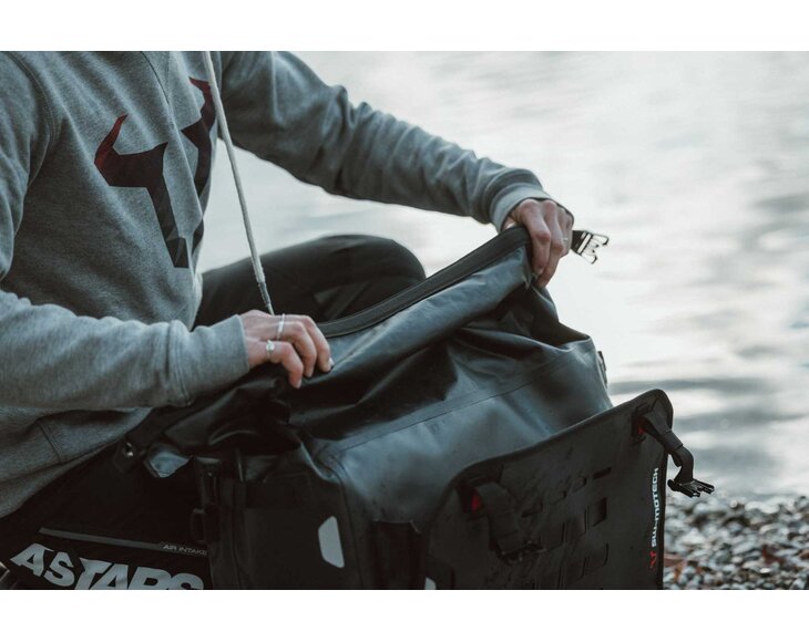 The SysBag WP bags are your reliable companions for every adventure, for every application and every motorcycle there is a suitable model. Thanks to careful material selection and elaborate processing, all three sizes S, M and L are completely waterproof and extremely robust. They have a roll-top closure and an overlapping lid. The inner pocket is removable, and two freely positionable dividers with velcro make it easy to divide up the luggage. The matching adapter plates for attaching the bags to the respective carriers are included in delivery.