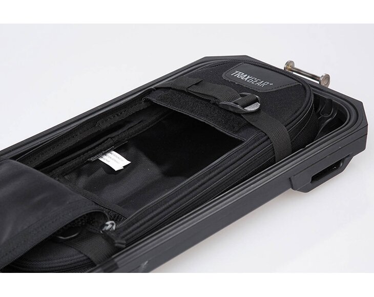 Polstrovaný vak vnitřní víko TRAX ADV M/L je vyroben z odolné proti roztržení a UV důkaz, 600 D polyester. Pomocí upínacích pásků je součástí dodávky, tašku lze snadno připojit k upevňovacími body uvnitř víka každé straně případu TRAX ADV. Systém praktický zip sáčky poskytuje rychlý přístup k jeho obsahu, i když připevněn uvnitř případu víko, transportní rukojeť umožňuje snadné odstranění. Další vnitřní komora doplňuje seznam funkcí tašky.