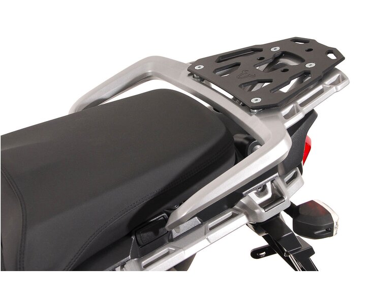 This all-in-one-system includes all products needed to mount a topcase: TRAX ADV topcase, bike-specific ALU-RACK, adapter plate and TRAX Lock Cylinder Set. Ready for the road with an aluminum case which offers durability and seal tightness against water and dust as well as easy handling. The premium aluminum topcase with a wall strength of 1.5 millimeters accepts any challenge - whether you take your luggage on a rough country ride, a relaxed road cruise or for a short trip. Bike-specific ALU-RACK and the adapter plate provide safe mount of the topcase by simply sliding it on the adapter plate and fixing it with a latch. The system is available with silver or black TRAX ADV topcase (see scope of delivery).
