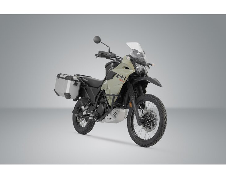SW-MOTECH has built the silver aluminum case system suitable for the Kawasaki KLR 650 (21-) using extremely durable, bike-specific PRO side carriers.