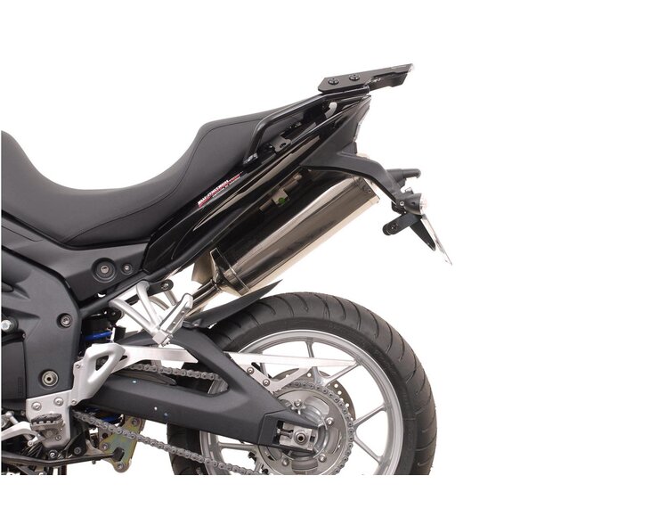 The tough TRAX ADV aluminum cases accept any challenge: Embossed designs add to the stability of the welded aluminum walls with a strength of 1.5 millimeters. The removable lid with anodized aluminum carrying handle and quick release fastener allows easy loading and unloading of the waterproof motorcycle cases. A lateral chamfer on the outer case edge provides ground clearance while cornering. With TRAX ADV aluminum pannier system you are ready for adventure. The complete system consists of the following components: TRAX ADV side cases, EVO carriers, adapters and lock cylinder set at an attractive price. Carrier and case configuration have been carefully selected to complement the motorcycle models tail geometry and exhaust system.